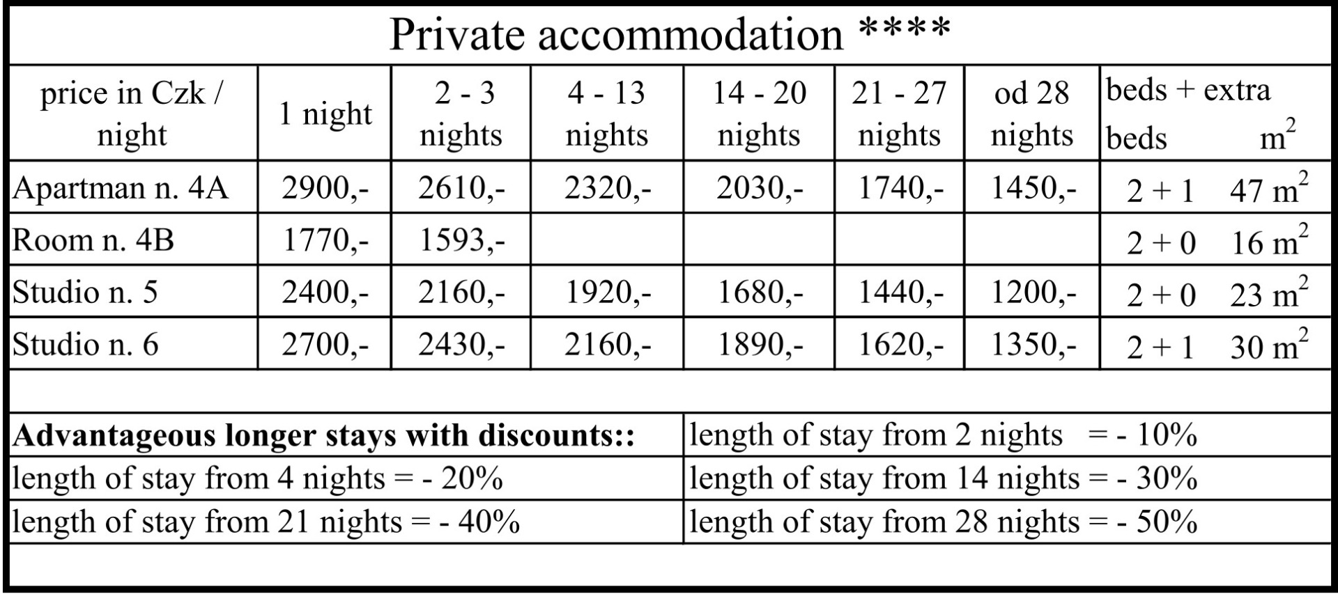 - the price of accommodation is the same even for different numbers of people, as an extra bed is an existing sofa bed